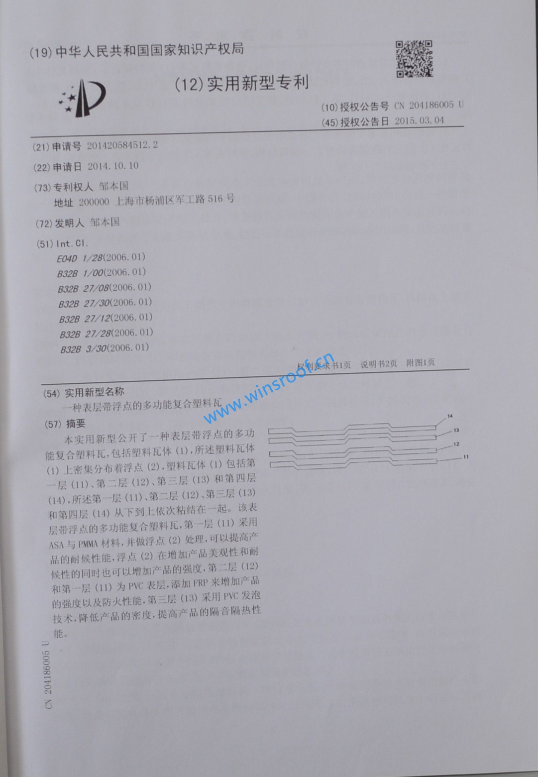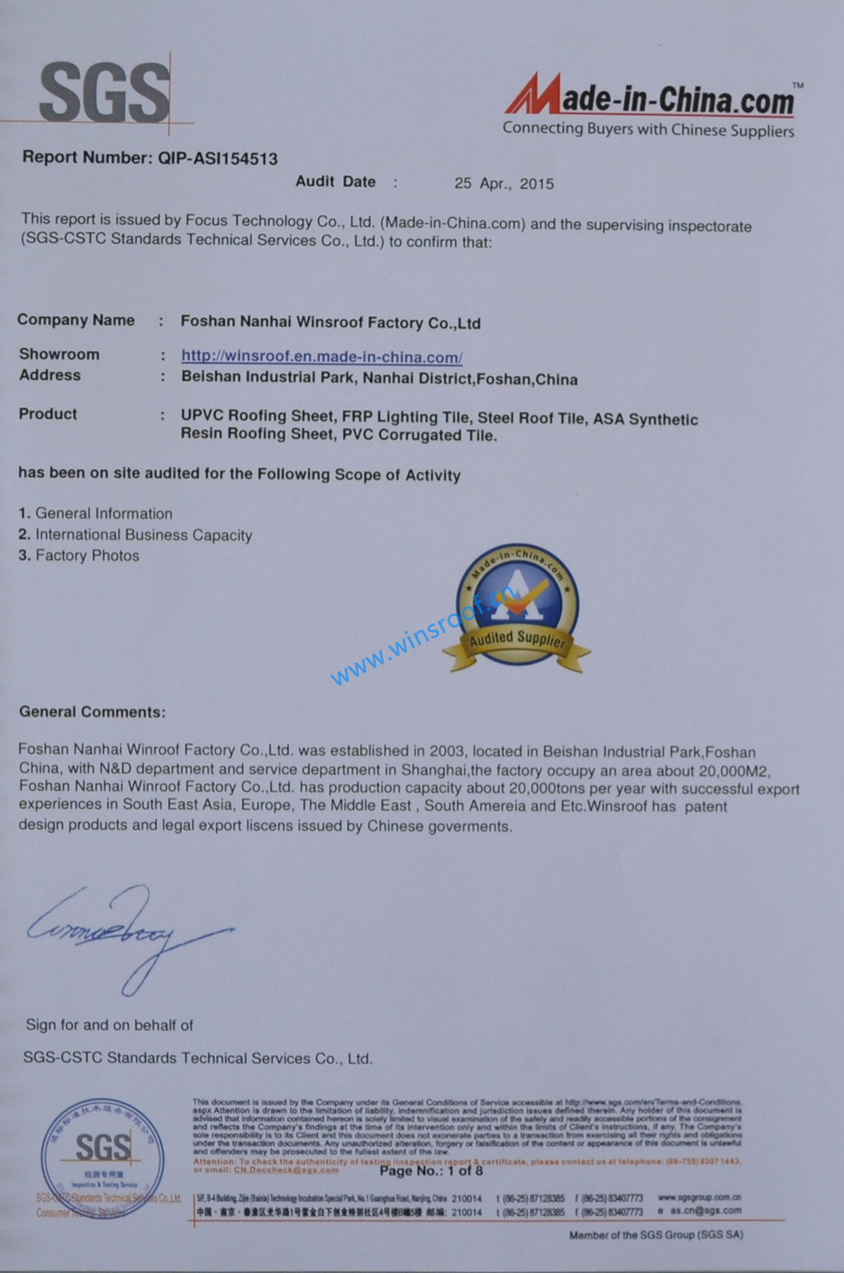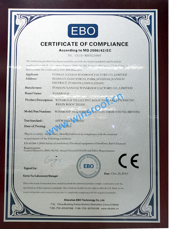 +86-0757-86181072-18 sobre nosotrosWINSROOF: EL FABRICANTE DE TECHOS CON LA CAPACIDAD DE I + D MÁS AVANZADAInvertidos por Dream- comunidad y con más de 20 años de experiencia en la industria del plástico , Foshan Nanhai Winsroof Factory es el principal fabricante de tejas plásticas de techo. Estamos especializados en la investigación, desarrollo y fabricación de diferentes tipos de materiales para techosLa cooperación con la Universidad de USST , Winsroof ha tenido mucho éxito en la investigación. Introducimos las máquinas y la tecnología más avanzadas con capacidad mínima de producción de 10.000 toneladas por productos al año.Nuestros productos incluyen:1 alto aislamiento de UPVC tejas , anticorrosión APVC tejas , Ultra-meteorización ASA Tejas ;2 Tejas Resina sintética ASA /PMMA;3 Transparente UPVC tejas, Transparentes tejas FRP, azulejos de policarbonato transparente;4 . Azulejo de azotea de acero galvanizado caliente .5 . Diseño de tejado, de soluciones....